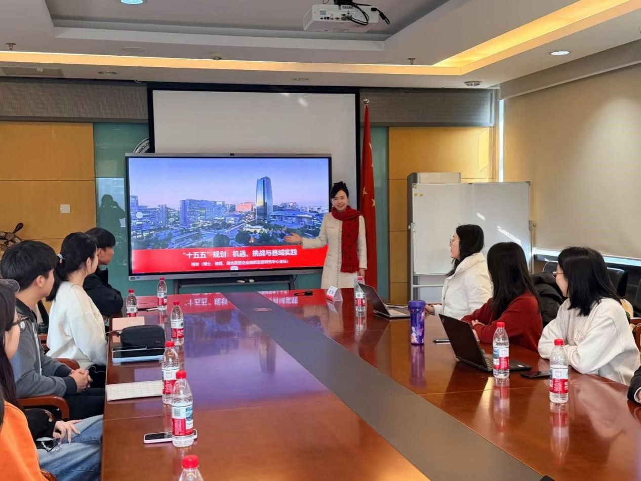 12月13日,在北京工商大学阜成路校区,中心主任柯玲教授受邀给北京工商大学经济学院的博士研究生们带来《“十五五”规划:机遇、挑战与县域实践》为主题的讲座。