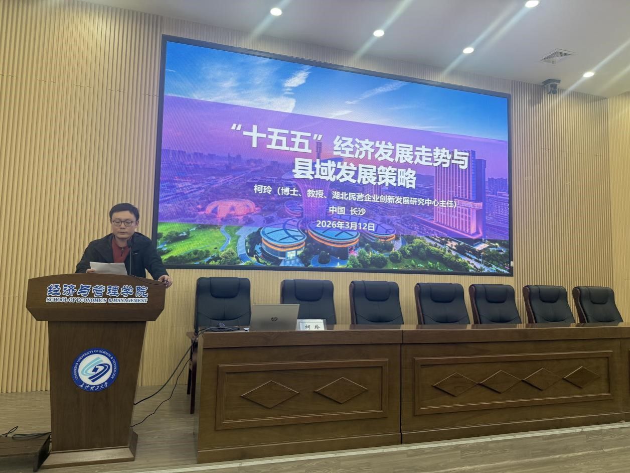 3月12日,在长沙理工大学金盆岭校区交通大楼100报告厅,中心主任柯玲教授受邀给长沙理工大学经济与管理学院的近百名学生带来《“十五五”经济发展走势与县域发展策略》为主题的讲座。